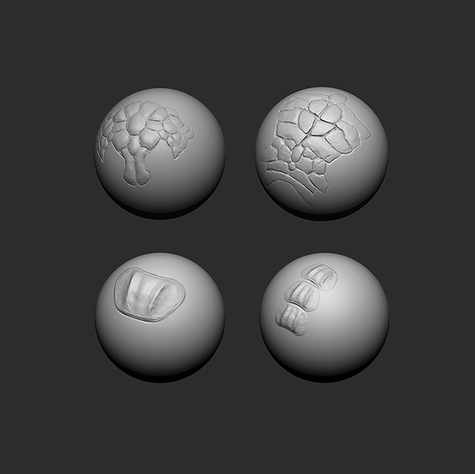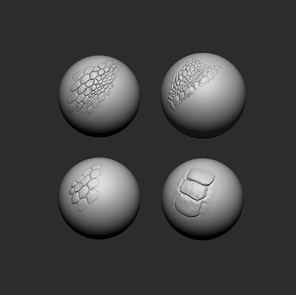 You'll get 24 High Quality Brushes sculpted by hand in Zbrush, which are very useful to create reptiles, dragons and other related creatures.