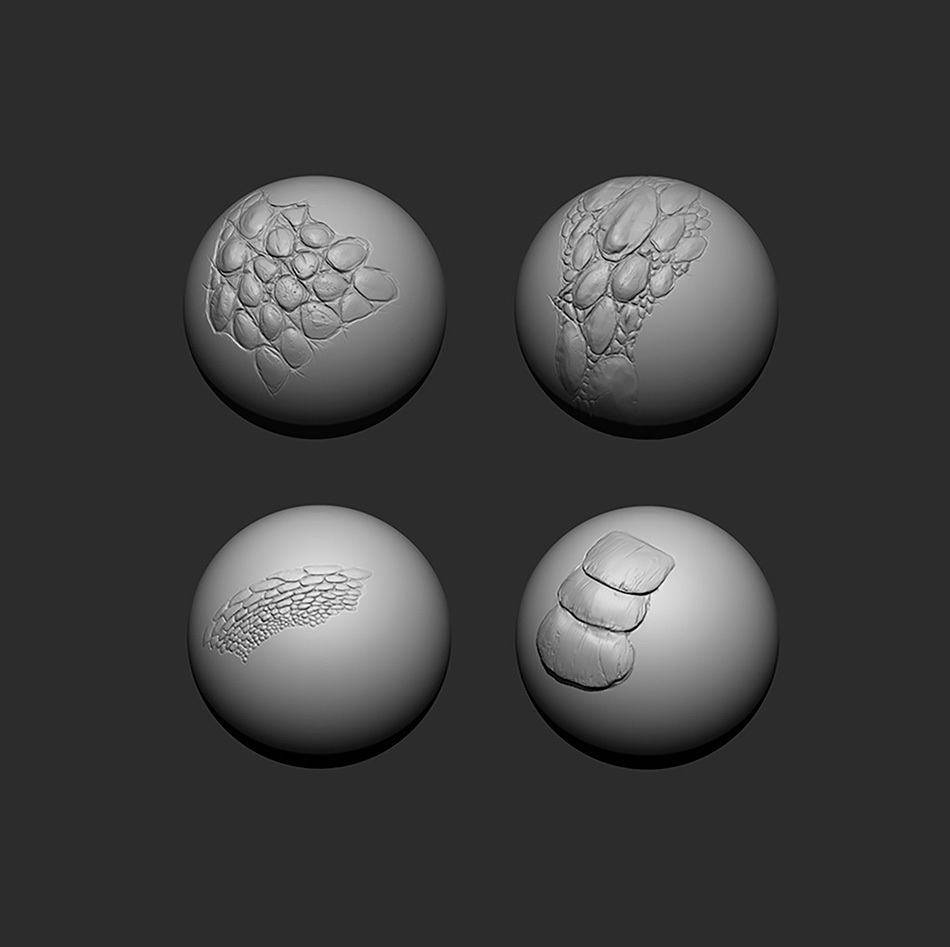 Most of the brushes are based on real reptiles like crocodiles and lizards and others were created to fit a more fantastic look like dragons.